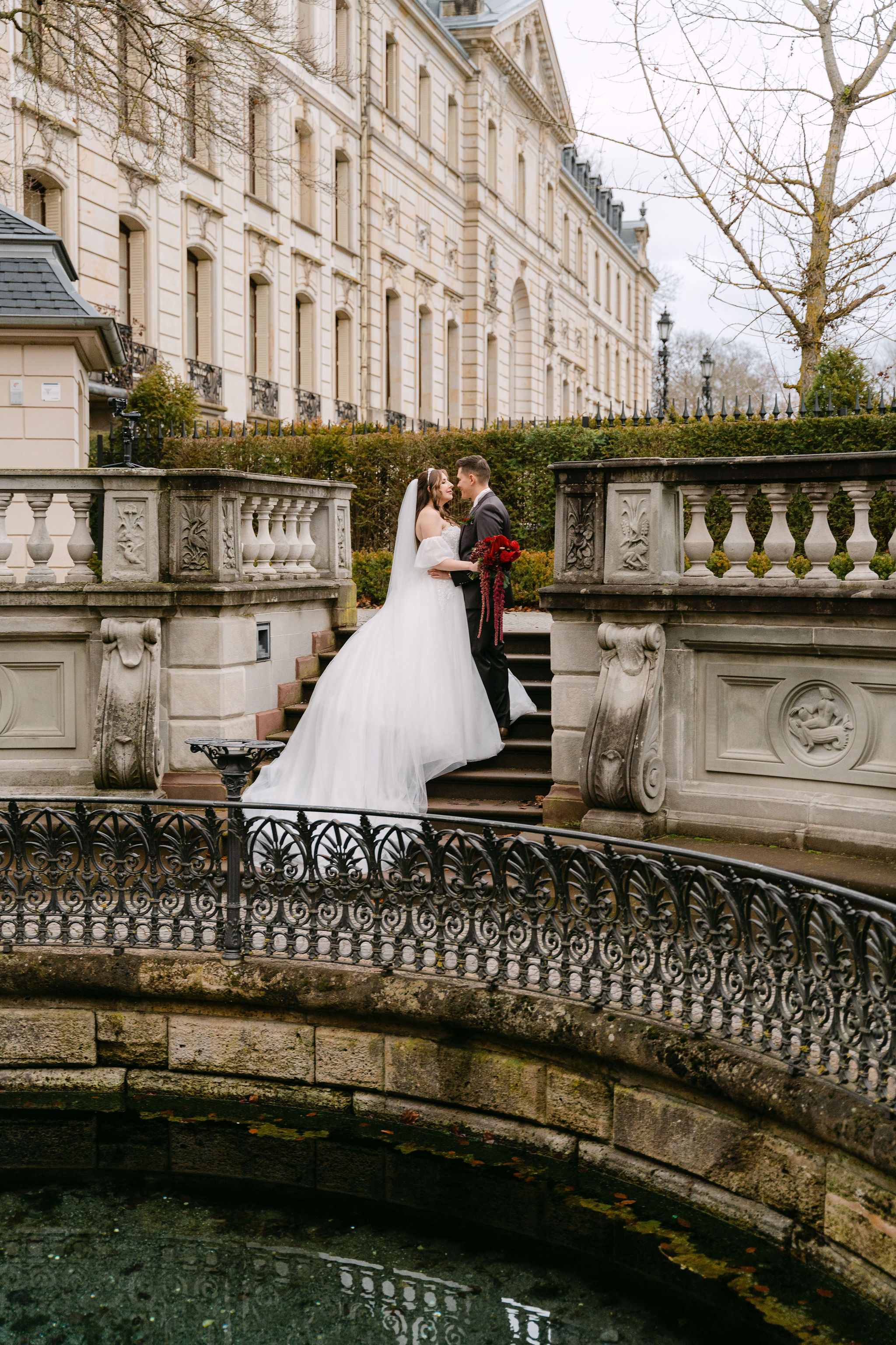 Der Tag begann mit dem Getting Ready des Brautpaars in Birkenfeld. Der First Look fand beim Schloss Neuenbürg statt – trotz Regen konnten die beiden ihn noch draußen erleben. Für das Shooting entdeckten wir im Schloss einen wunderschönen Raum mit riesigen Fenstern und Vorhängen, der sofort zum Highlight des Shootings wurde.